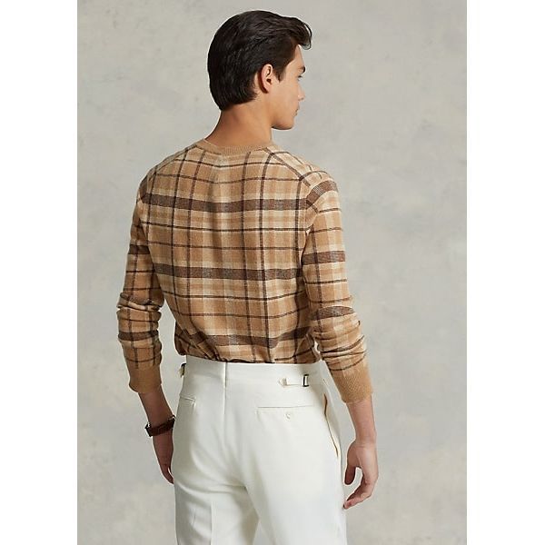 This lightweight sweater is intarsia-knit from soft cashmere and features a vintage plaid pattern sourced from the Ralph Lauren archive.