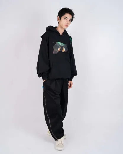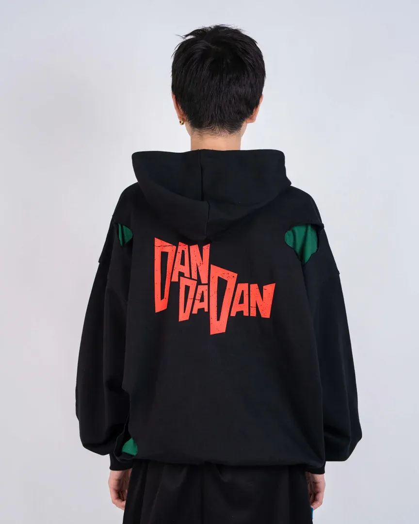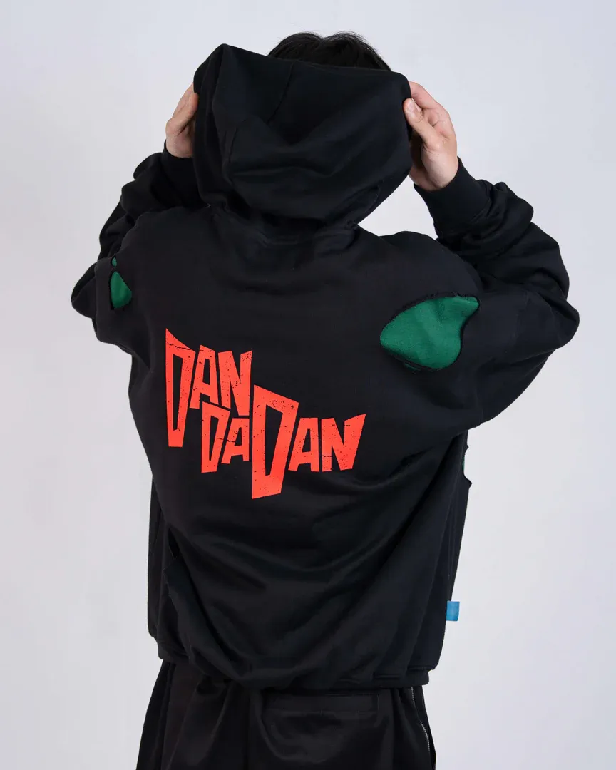 The MOMO & OKARUN WEATHERED HOODIE is crafted in soft cotton with a washed finish and raw cuts throughout. Features a bold front graphic capturing Momo and Okarun together and a DAN DA DAN logo print on the back.